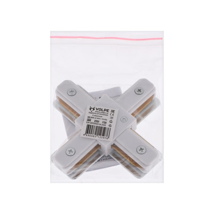 Коннектор для шинопровода Volpe, Q122, G41, Х-образный, однофазный, белый