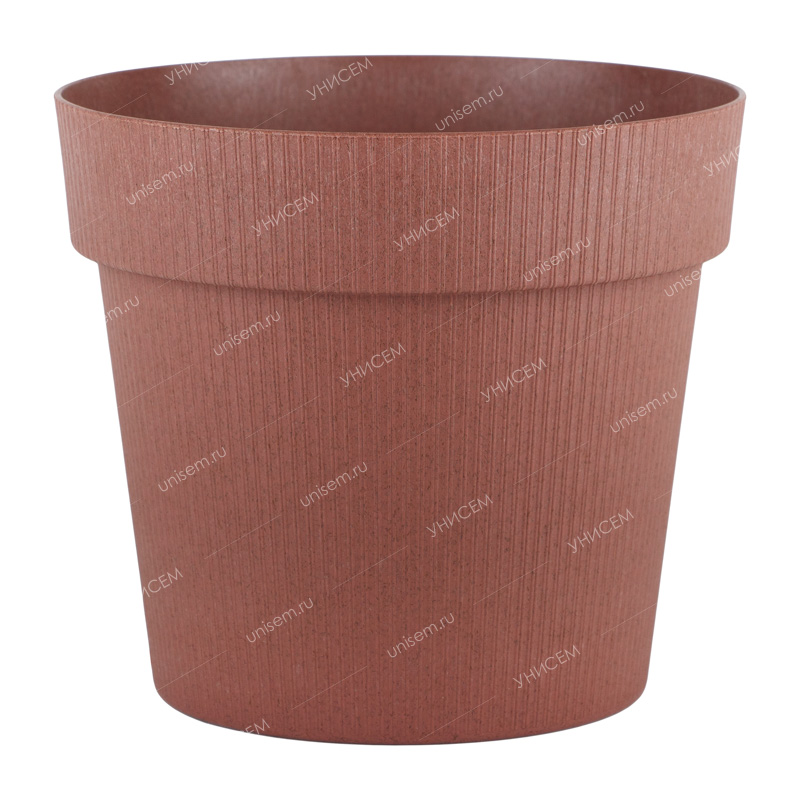 Оригинальное кашпо «Протея ЭКО» – стильное кашпо в современных оттенках, имеет немного конусовидную форму. Кашпо с приятной, рельефной поверхностью, станет прекрасным декоративным элементов Вашего дома или офиса. Окрашено в коричневый цвет, состоит из основного горшка и дренажной решетки. Между решеткой и основным горшком можно поместить дополнительный дренажный слой (керамзит и другой дренажный материал). Вся лишняя влага стекает в промежуточное пространство между решеткой и дном и не даёт влаге застаиваться, а корневой системе гнить. При отсутствии полива в течение нескольких дней, растение начнет использовать эти излишки. Особенность коллекции «ЭКО» в материале – в своём составе содержат до 70% полипропилена и 30% древесной стружки. Такие горшки полностью подлежат повторной переработке. Объём – 3,1 литров, диаметр – 18,5 см.