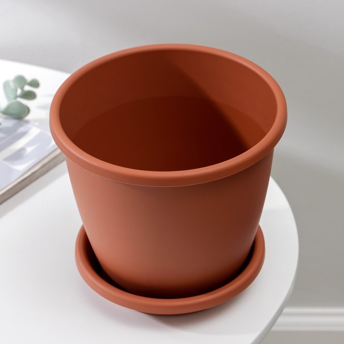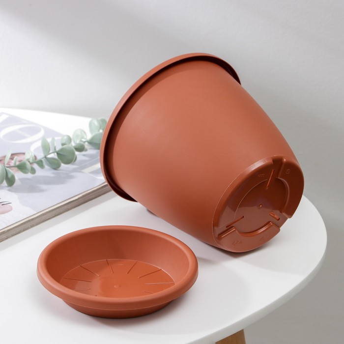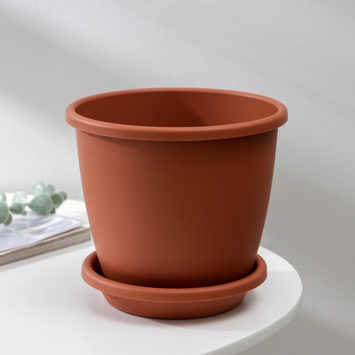 Горшок для цветов с поддоном «Афина», 2.2 л, пластиковый, коричневый
