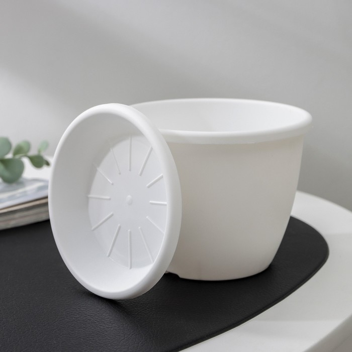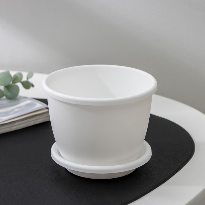 Горшок для цветов с поддоном Альтернатива «Афина», 500 мл, пластиковый, белый