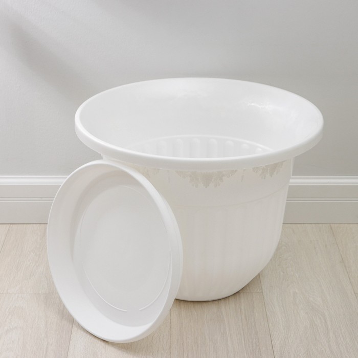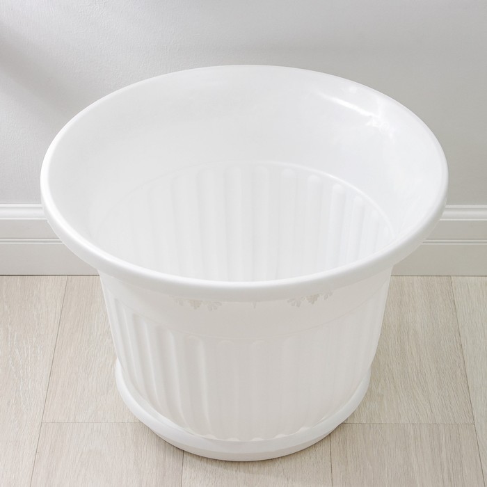 Горшок для цветов с поддоном «Лозанна», 40 л, пластиковый, белый