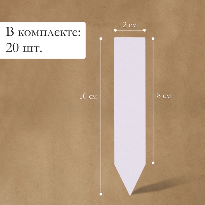Бирки садовые, для маркировки растений, 10 см, набор 20 шт., пластик, белые, Greengo