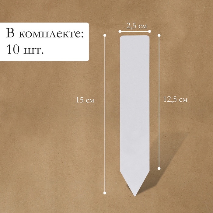 Бирки садовые, для маркировки растений, 15 см, набор 10 шт., пластик, белые, Greengo