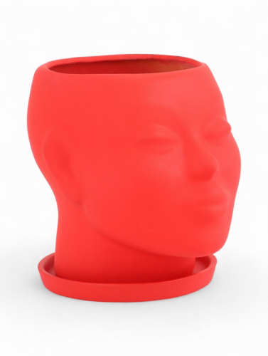 Декоративный горшок для цветов «Голова», 1.3 л, 16×16×14 см, керамический, с поддоном, красный