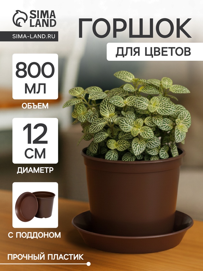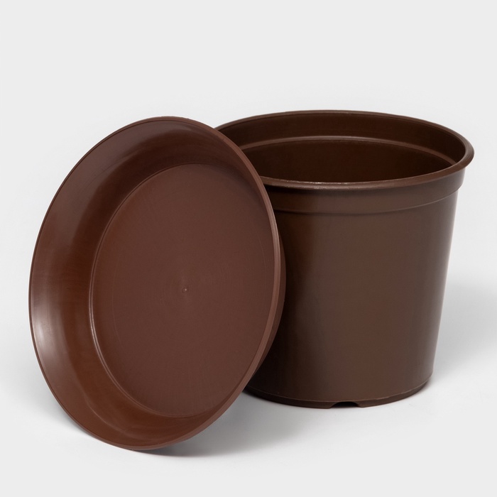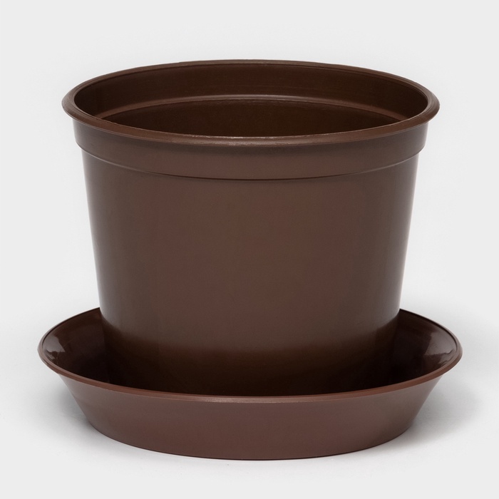 Горшок для цветов с поддоном «Доляна», 800 мл, пластиковый, коричневый, оттенок МИКС