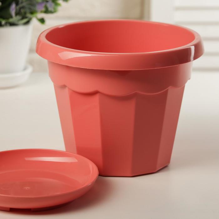 Горшок для цветов с поддоном «Доляна. Эрика», 1.8 л, пластиковый, коралловый