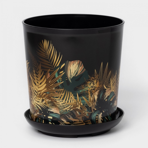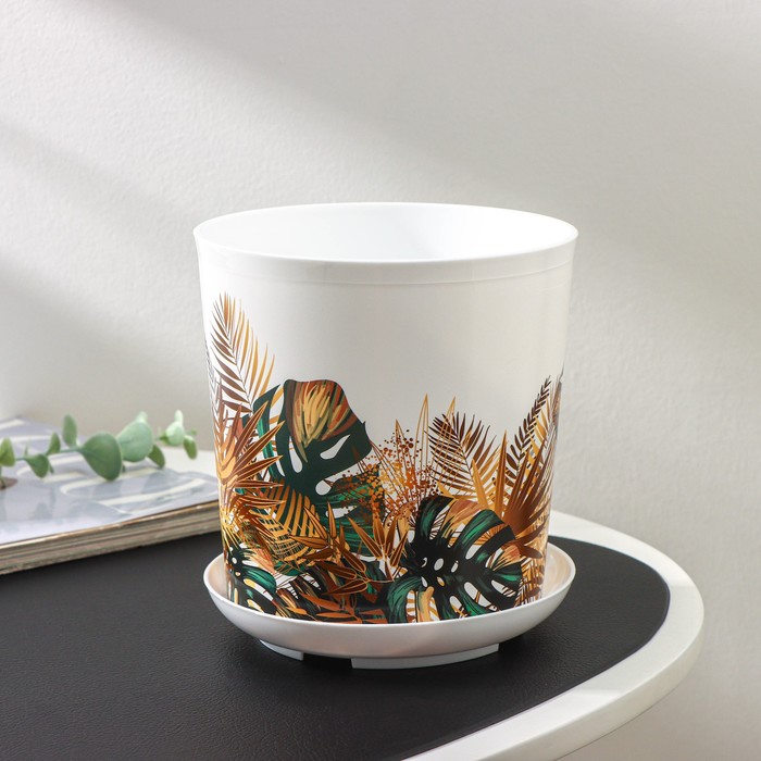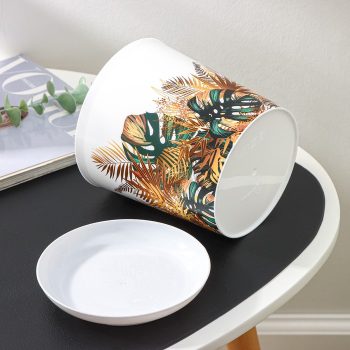 Горшок для цветов с поддоном Доляна «Голди. Листья», 1.6 л, d=14 см, h=15.5 см, пластиковый, цвет белый