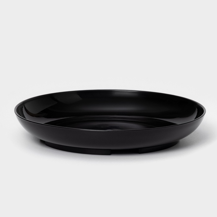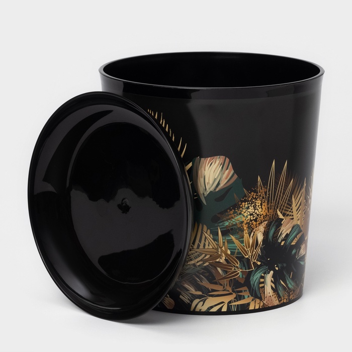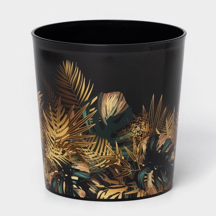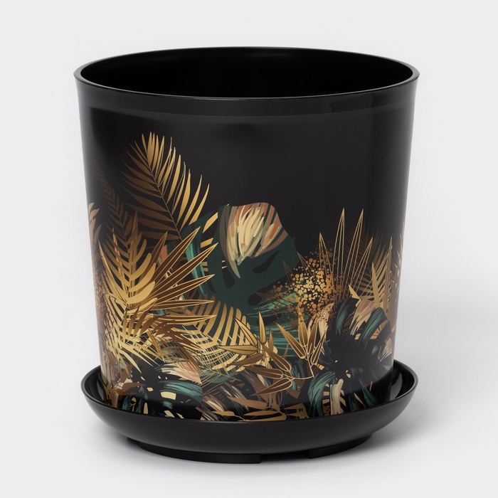 Горшок для цветов с поддоном Доляна «Голди. Листья», 1.6 л, d=14 см, h=15.5 см, пластиковый, цвет чёрный