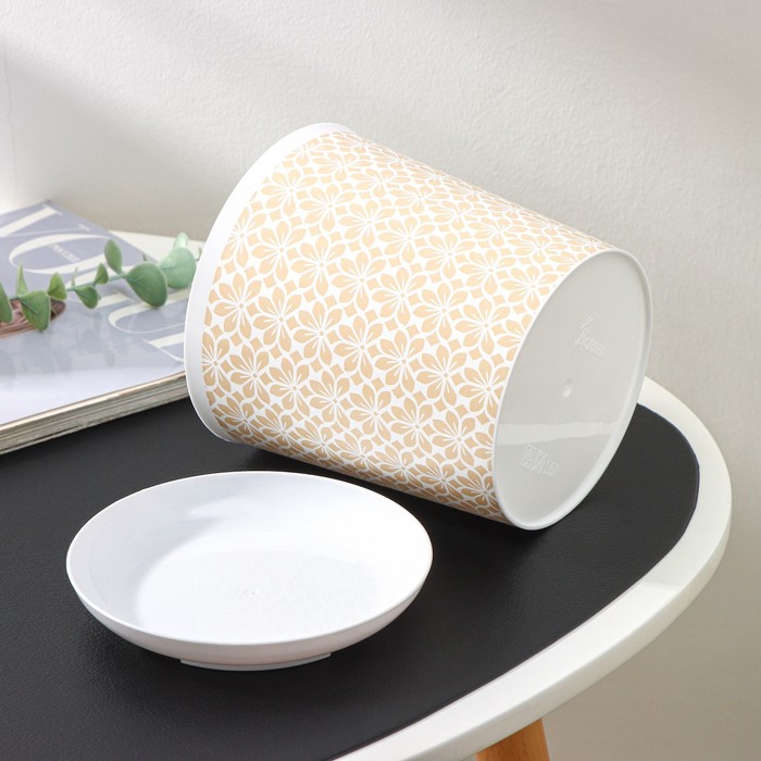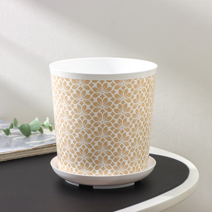 Горшок для цветов с поддоном Доляна «Кракле», 1.6 л, d=14 см, h=15.5 см, пластиковый, цвет белый