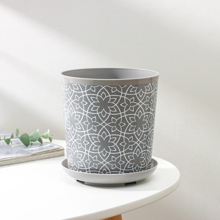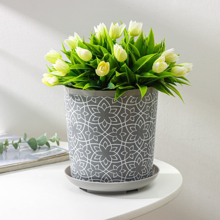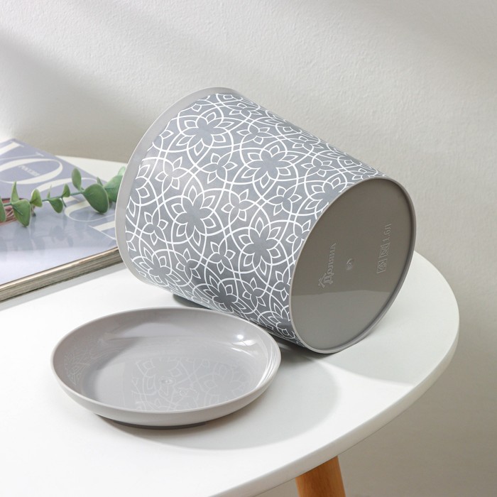 Горшок для цветов с поддоном Доляна «Кракле», 1.6 л, d=14 см, h=15.5 см, пластиковый, серый
