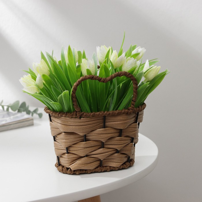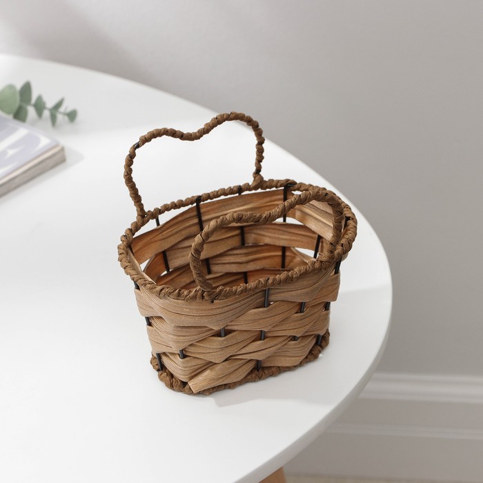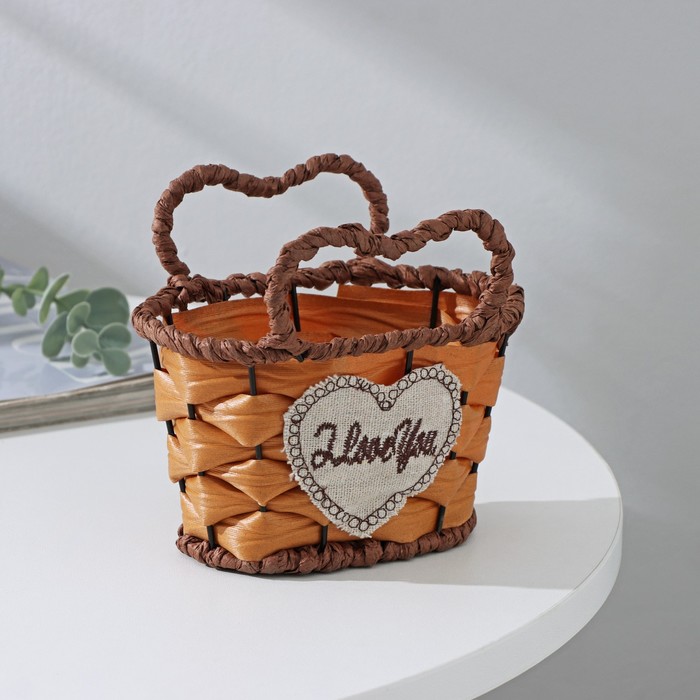 Кашпо для цветов плетёное с ручками Доляна «Сердце», 13.5×10×12.5 см, светло-коричневое