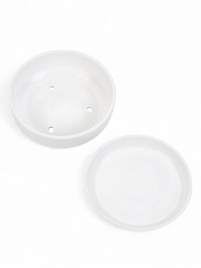 Горшок - бонсайница «Огма», для кактусов и суккулентов, 1.4 л, d=18 см, h=6.5 см, керамика, с поддоном, белый