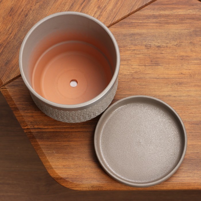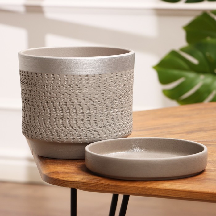 Керамический цветочный горшок «Брюссель» с серебристым ободком – идеальный выбор для современного домашнего и офисного убранства. Его сдержанный серый оттенок гармонично впишется в любой интерьер, подчеркнув утонченный вкус владельца.