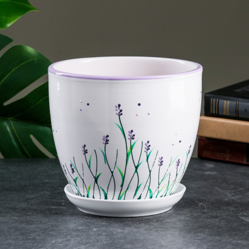 Горшок для цветов «Лаванда», керамический, с поддоном, 2.5 л, белый