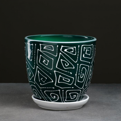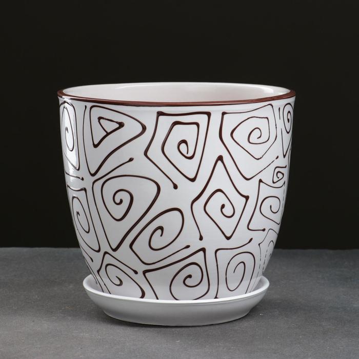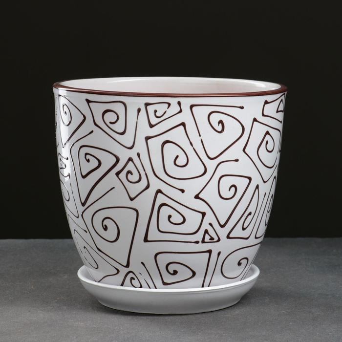 Горшок для цветов «Абстракция», 2.5 л, d=19 см, h=18 см, керамика, с поддоном, белый