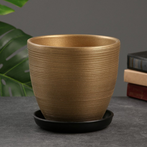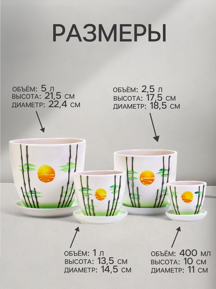 Горшок для цветов «Азия», керамика, с поддоном, набор 4 шт.: 400 мл, 1 л, 2.5 л, 5 л