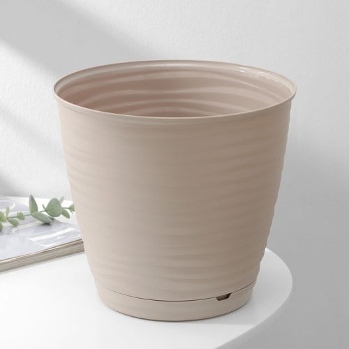 Горшок для цветов с поддоном Saffron, 5.4 л, d=22.4 см, h=20.5 см, пластиковый, бежевый