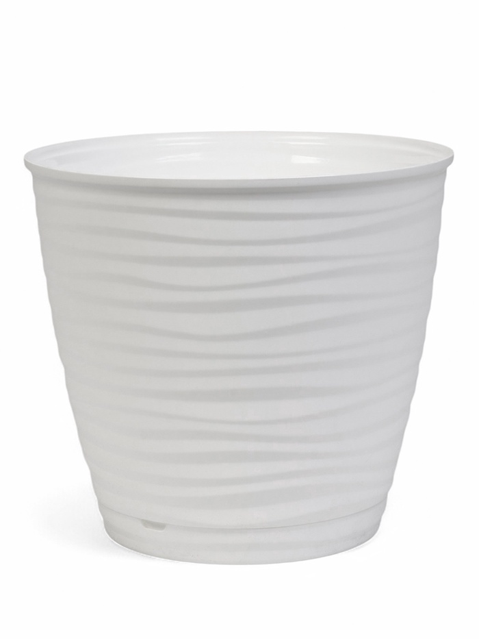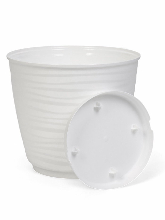 Пластиковый горшок Saffron с поддоном - идеальное решение для крупных комнатных растений. Объем 9,1 литра и диаметр 26,7 см обеспечивают достаточно пространства для корневой системы, а высота 24,5 см делает его подходящим для высоких цветов. Классический белый цвет гармонично впишется в любой интерьер.