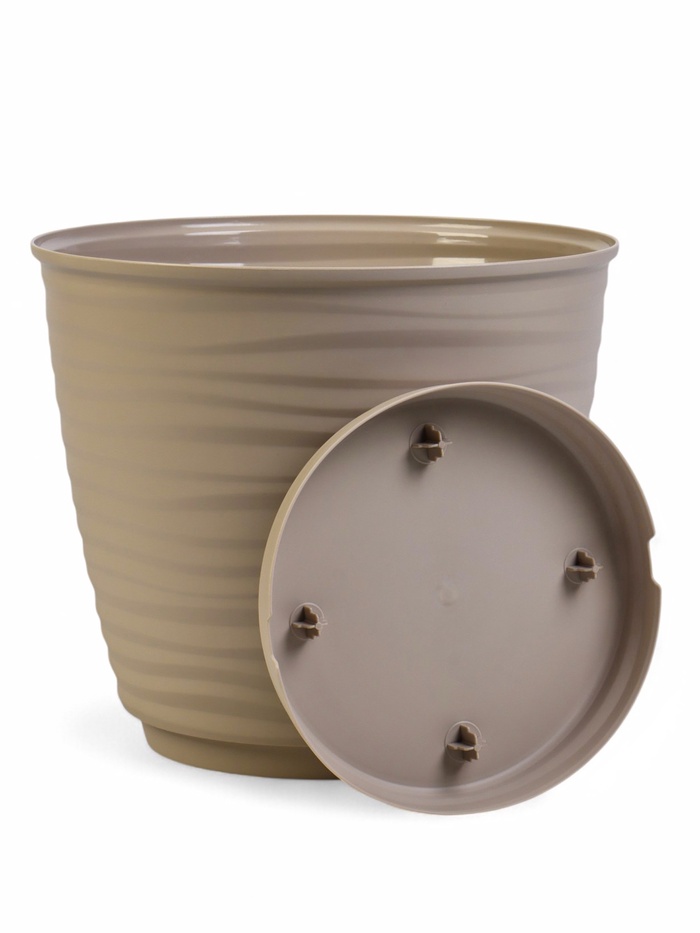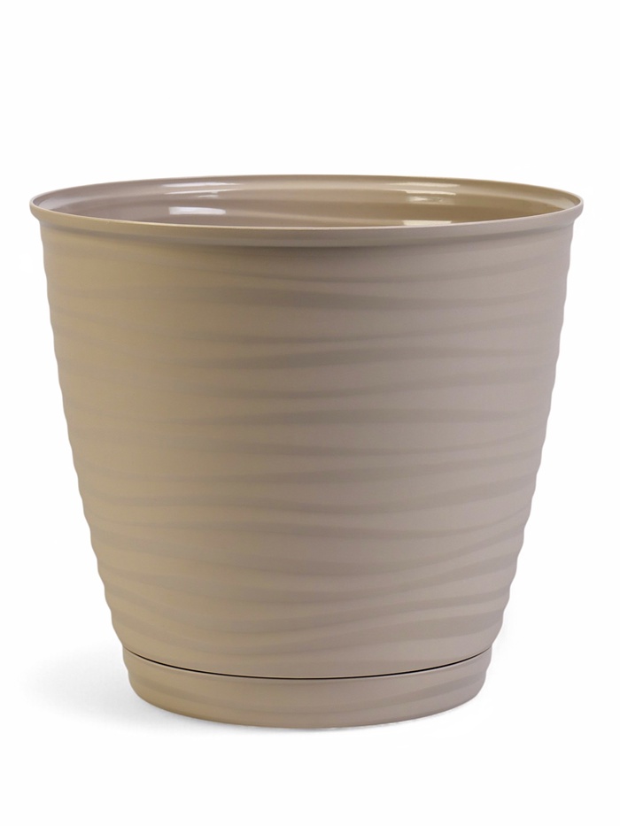 Горшок для цветов с поддоном Saffron, 9.1 л, d=26.7 см, h=24.5 см, пластиковый, бежевый