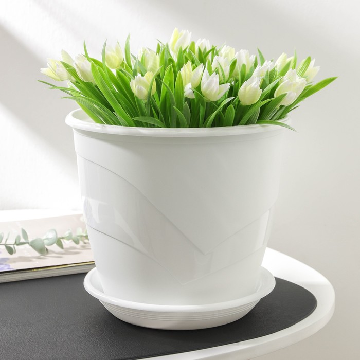Горшок для цветов с поддоном «Венеция», 4.1 л, d=21 см, белый