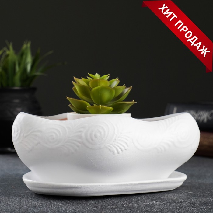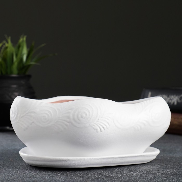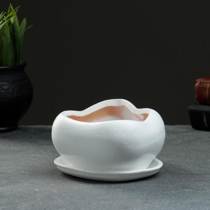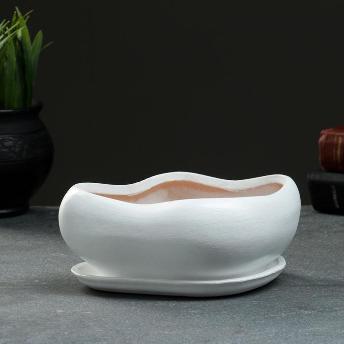 Горшок для кактусов и суккулентов «Бонсай», 600 мл, 18×14 см, керамический, с поддоном, белый