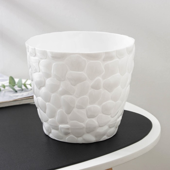 Горшок для цветов с поддоном «Камни», 2.6 л, пластиковый, белый