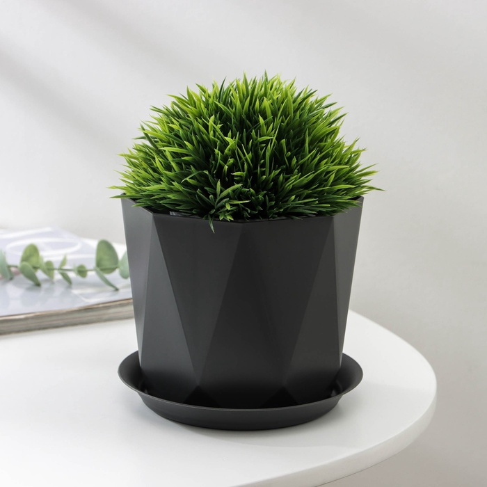 Горшок для цветов с поддоном «Призма», 1 л, пластиковый, графитовый