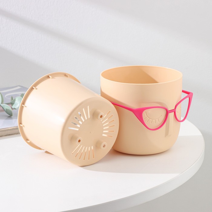 Кашпо для цветов со вставкой «Мари», 650 мл, d=11.5 см, h=10.5 см, бежевое