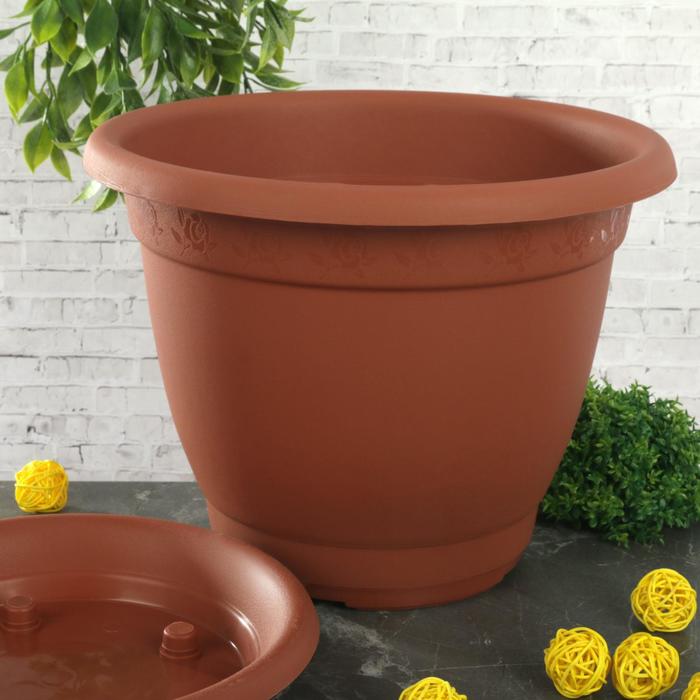 Горшок для цветов с поддоном «Борнео», 7.8 л, пластиковый, цвет терракотовый