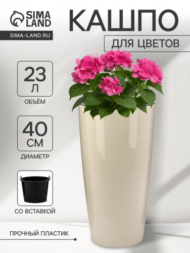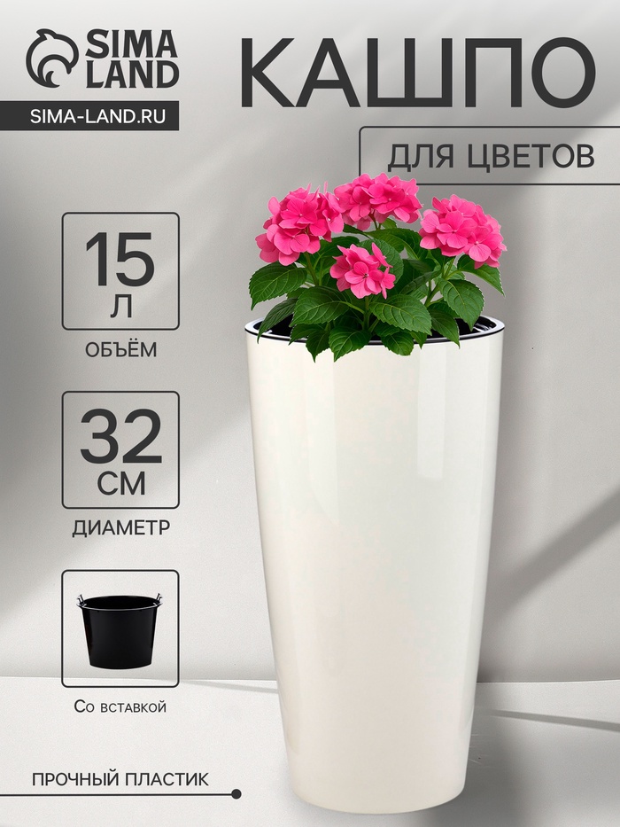 Кашпо для цветов «Рондо» – стильное и практичное решение для дома и сада. Напольное пластиковое кашпо объемом 15 л (диаметр 32 см, высота 56,5 см) с белой вставкой придаст элегантность любому интерьеру или открытому пространству. Прочный материал, лаконичный дизайн и удобная форма делают его универсальным выбором для цветоводов.