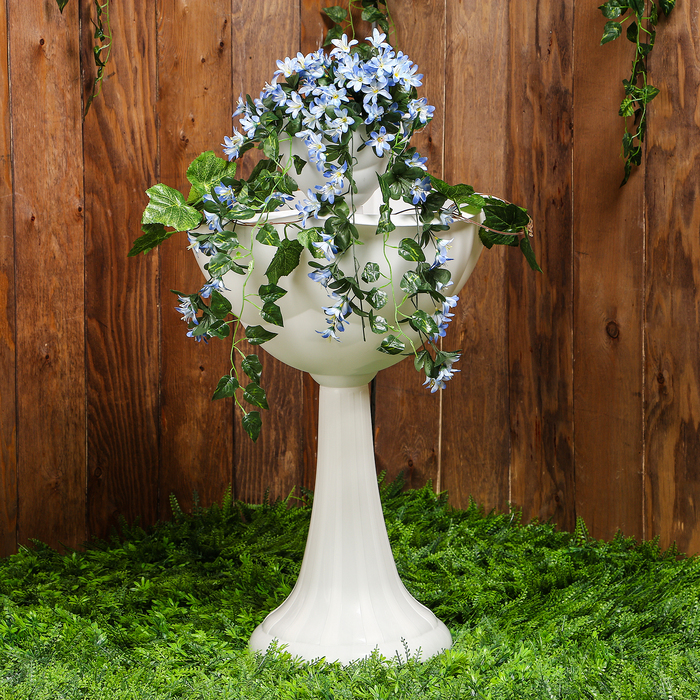 Клумба пластиковая, 2 яруса, d=25–55 см, высота бортика 87 см, на высокой ножке, белая