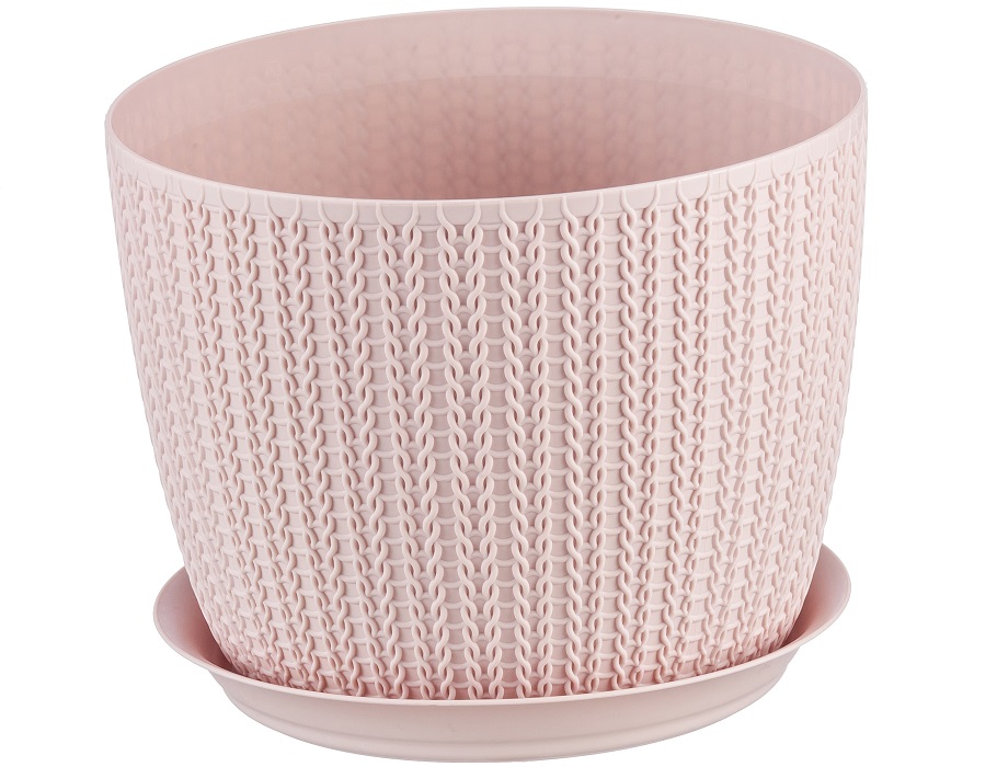Яркие, стильные, необычных форм и дизайна – такие изделия для комнатных растений из пластика станут идеальным решением для посадки любых комнатных растений. Современное и стильное кашпо «Вязание», украшенное рельефным рисунком, подчеркнёт красоту цветка и добавит уюта Вашему дому. Изюминка этого изделия – оригинальная текстура, имитирующая нежную вязку спицами. Изделие подойдет для озеленения офисов, квартир и загородных домов. Кашпо выполнено в светло-розовом цвете, изготовлено из лёгкого и прочного пластика. Благодаря этому высококачественному материалу, кашпо не пропускает воду, устойчиво к повреждениям и воздействию прямых солнечных лучей. Объём – 4,5 литров.