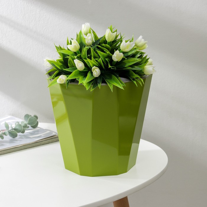 Кашпо для цветов со вставкой «Палермо», 3.6 л, цвет оливковый