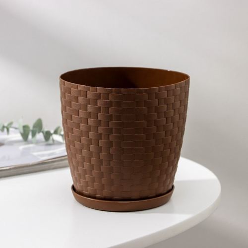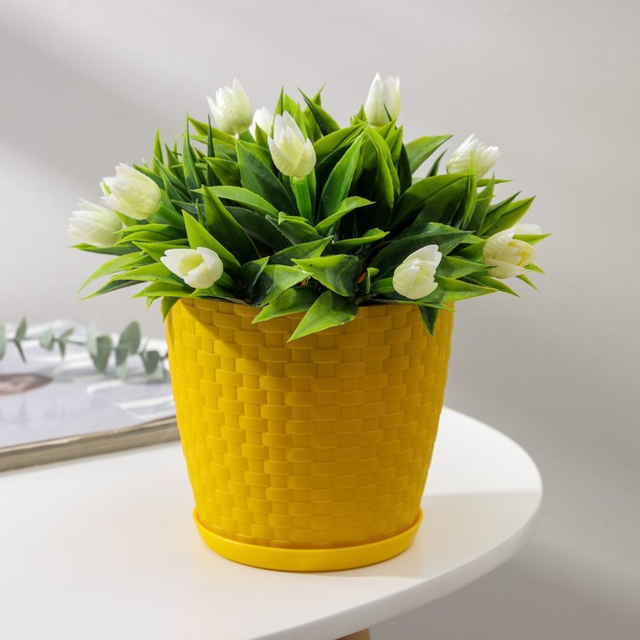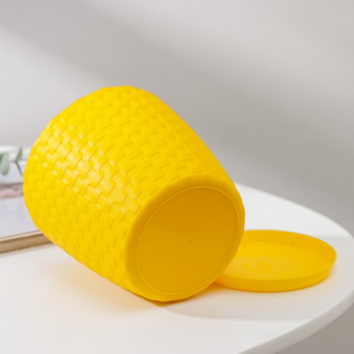 Горшок для цветов с поддоном «Ротанг», 1.2 л, d=13 см, h=12 см, пластиковый, жёлтый
