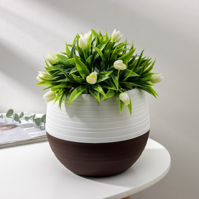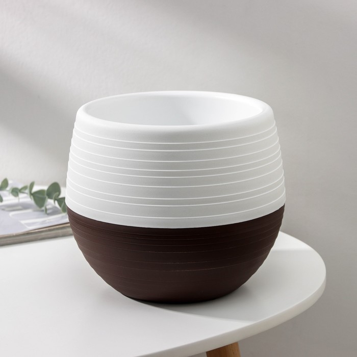 Горшок для цветов с поддоном «Япония», 2 л, пластиковый, белый / коричневый