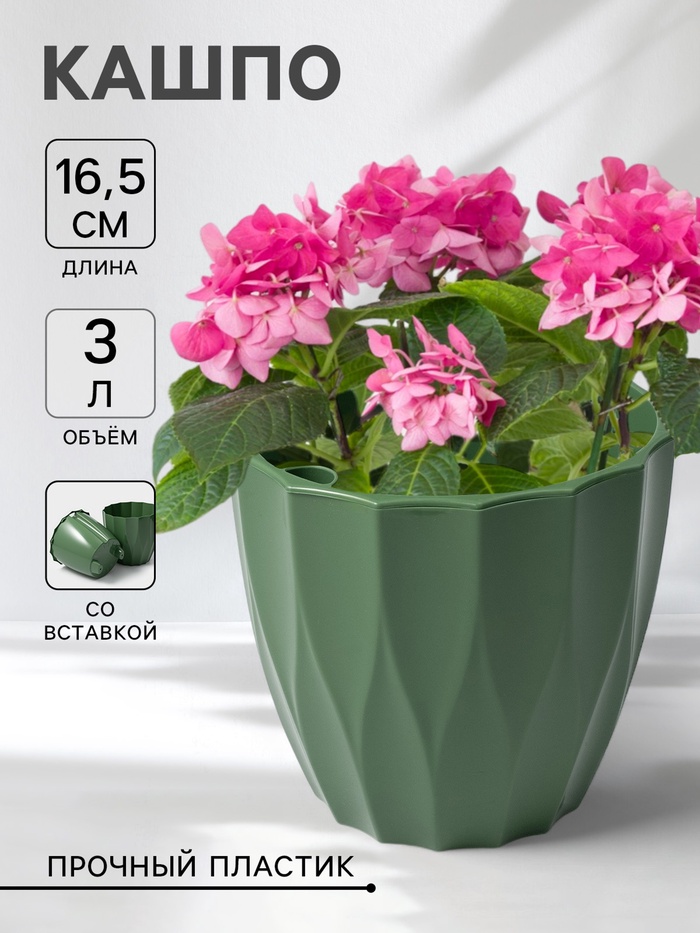 Кашпо для цветов со вставкой «Флюте», 3 л, малахит