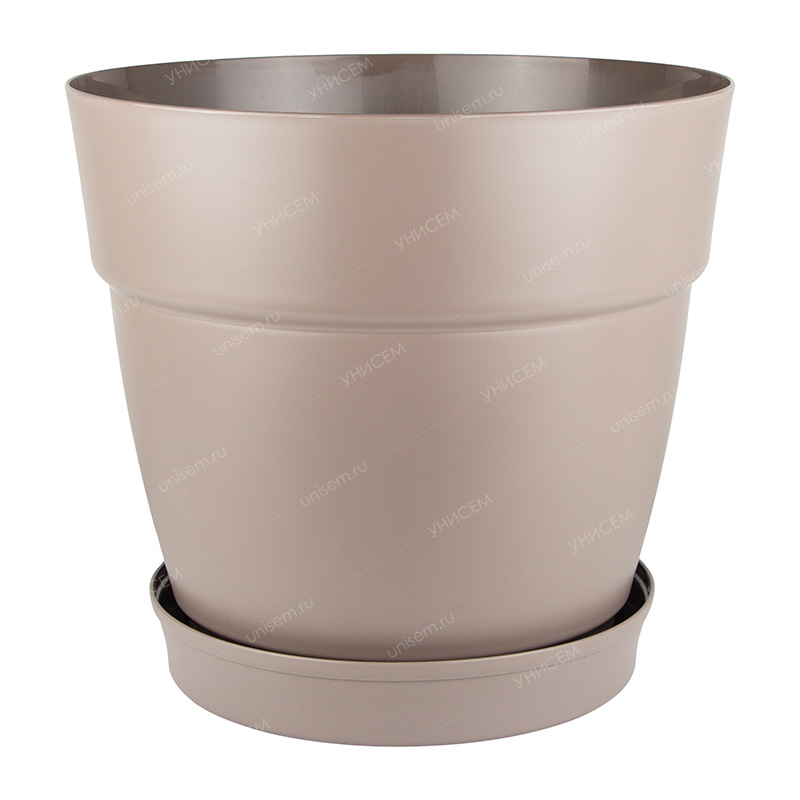 Простая и изысканная форма горшковInGreenколлекцииVilla de Fiori– будет органична в любом интерьере. Нежная, округлая форма и фактура натуральной керамики в сочетании с функциональностью, надёжностью и долговечностью полимеров – делают выбор в пользу горшков коллекцииVilla de Fioriбеспроигрышным вариантом. Каждый горшок оснащён внешним поддоном, надёжно фиксирующимся к корпусу горшка. Такая конструкция обеспечивает отличный дренаж – излишки воды не застаиваются внутри и своевременно отводятся в поддон. При этом весь объём горшка является полезным и может быть полностью заполнен землёй. Поддон данного горшка оснащён колёсиками, которые делают перемещение крупных домашних растений лёгким и удобным. Благодаря высоким бортикам поддона лишняя жидкость не будет проливаться и поверхность, где установлен горшок будет оставаться чистой.Характеристики:• объём – 26 л;• диаметр – 38 см;• цвет – серый.Преимущества:• фиксируемый поддон на колёсиках;• стильный, классический дизайн;• высокопрочный и экологичный материал – пластик.