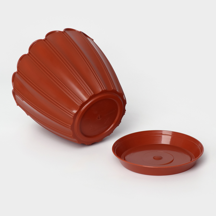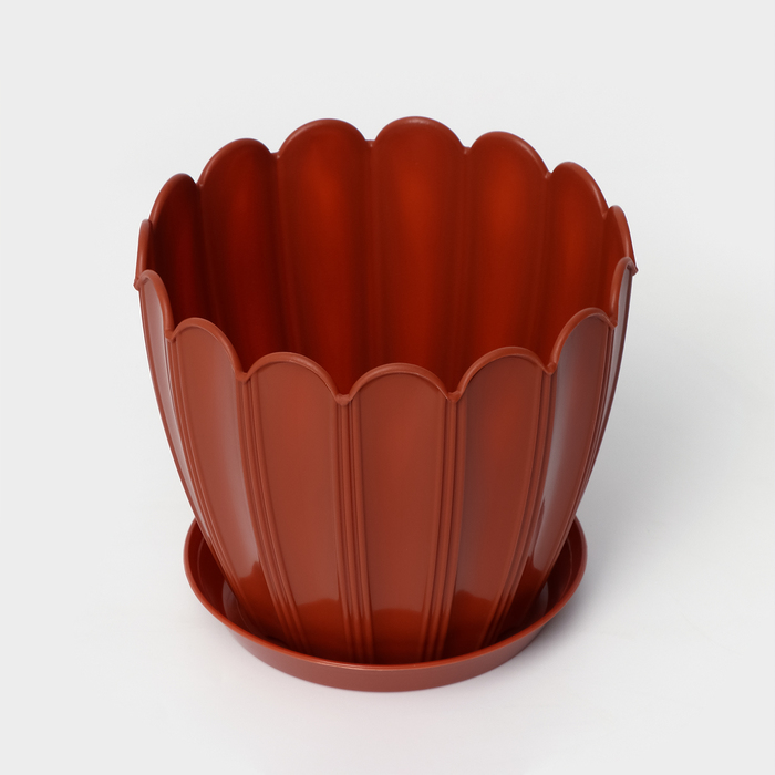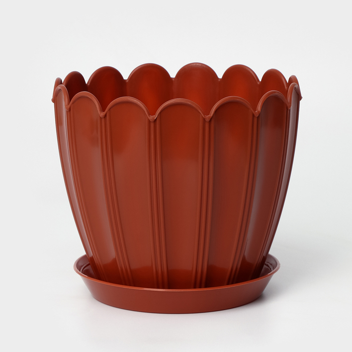 Горшок для цветов с поддоном «Хризантема», 2.1 л, d=16.5 см, h=14.8 см, пластиковый, терракот