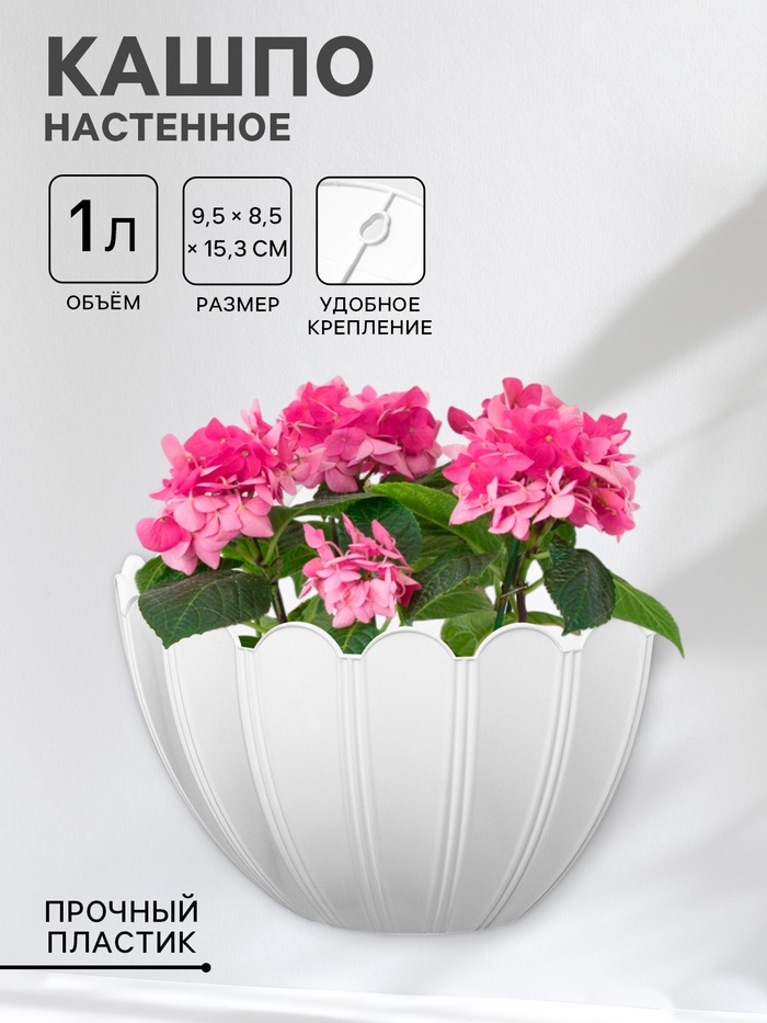 Кашпо для цветов настенное «Хризантема», 1 л, 9.5×8.5×15.3 см, белое