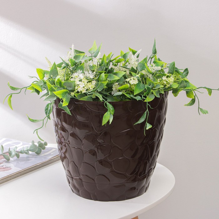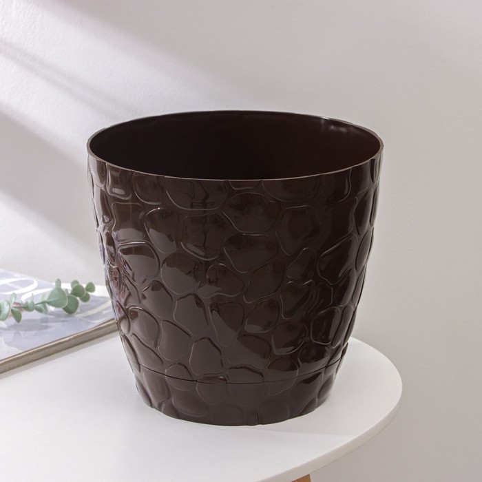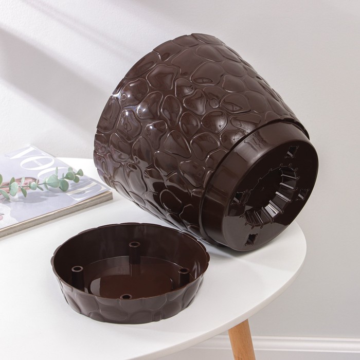 Горшок для цветов с поддоном «Камешки», 8 л, пластик, шоколадный