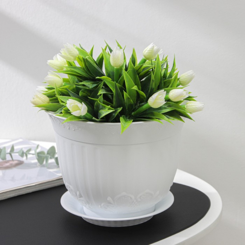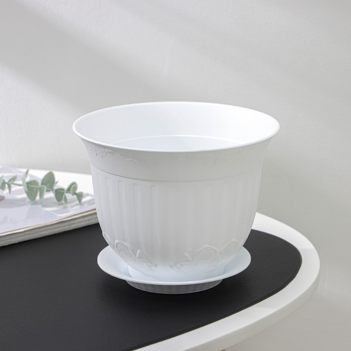 Горшок для цветов с поддоном СибПолимер «Ангара», 1.5 л, пластик, белый
