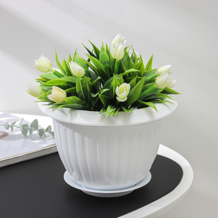 Горшок для цветов с поддоном «Байкал», 2 л, пластиковый, белый