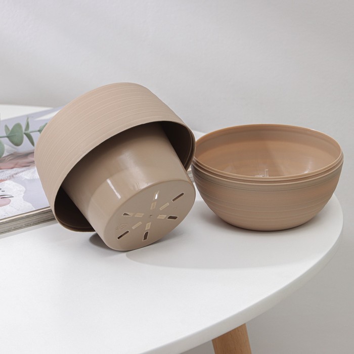 Горшок для цветов с поддоном СибПолимер «Дуэт», 500 мл, пластиковый, кофе с молоком