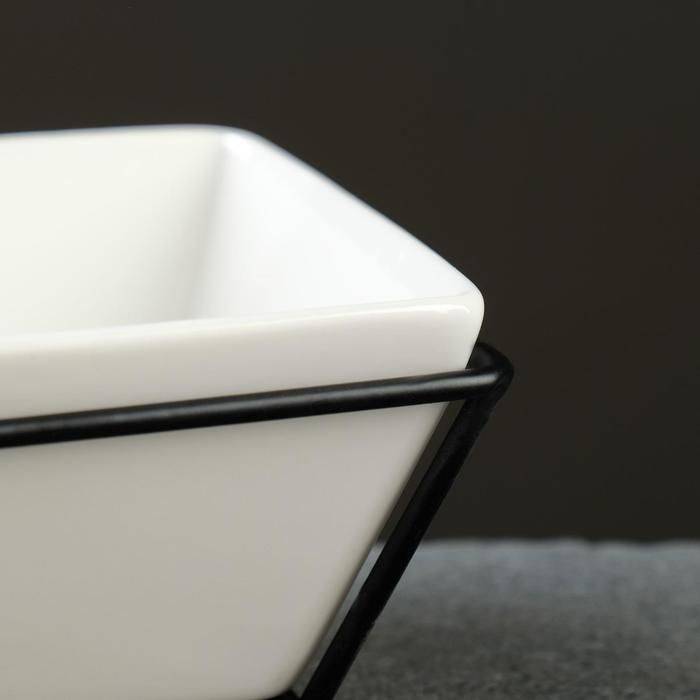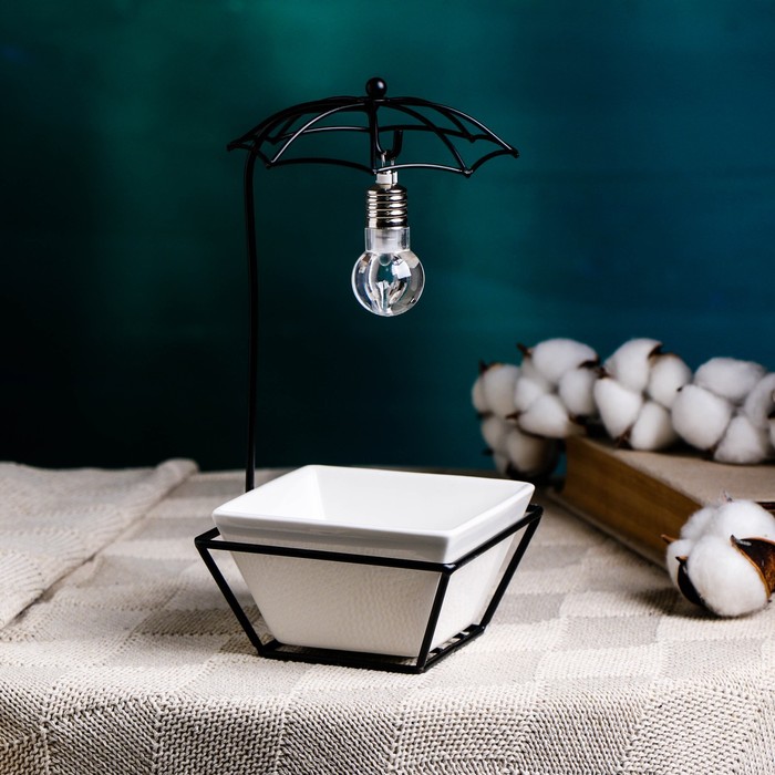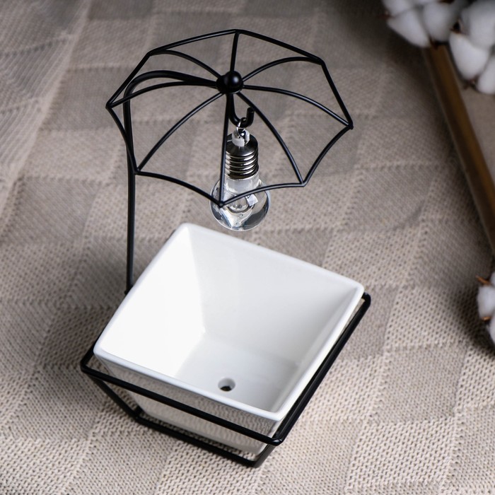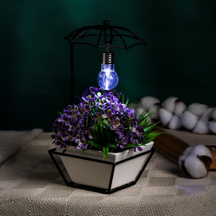 Горшок на подставке с синей подсветкой, керамический, 270 мл, 22×10×10 см, на батарейках AG3 (3 шт. в комплекте), белый на чёрной подставке
