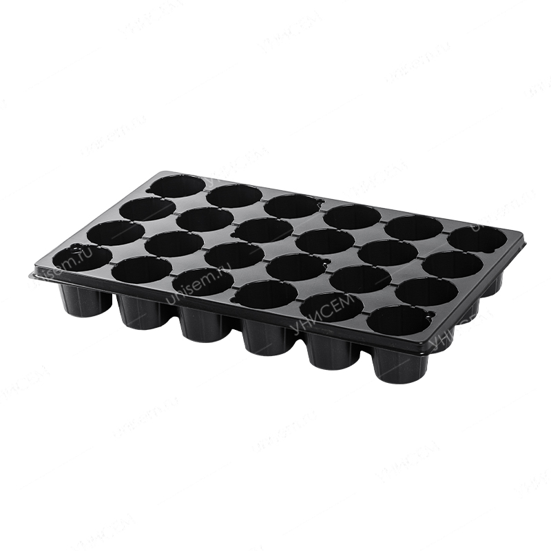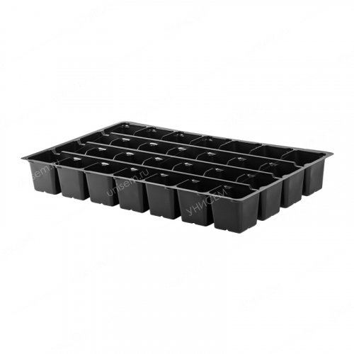 Кассета для рассады используется для рассадки, пересадки посадочного материала и раннего высевания семян. Каждая ячейка объёмом 230 мл предназначена для одного растения, благодаря чему корни не повреждаются при пересаживании. Большое количество ячеек позволяет компактно рассадить сразу несколько различных культур. Всего 24 ячейки. Кассета изготовлена из пластика чёрного цвета, размеры – 52 × 31× 6,5 см.