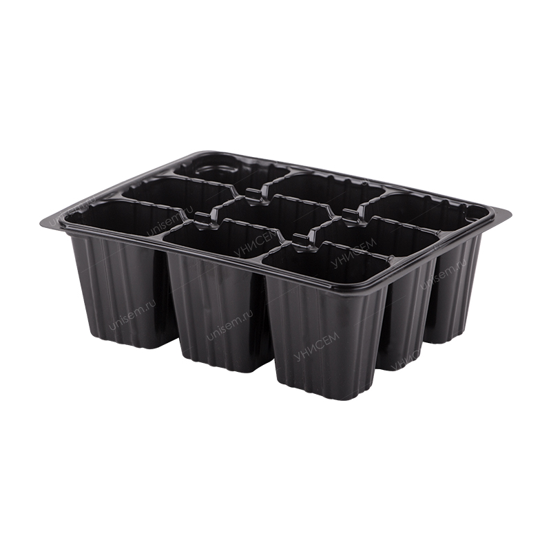 Кассета для рассады используется для рассадки, пересадки посадочного материала и раннего высевания семян. Каждая ячейка объёмом 95 мл предназначена для одного растения, благодаря чему корни не повреждаются при пересаживании. Большое количество ячеек позволяет компактно рассадить сразу несколько различных культур. Всего 9 квадратных ячеек. Кассета изготовлена из пластика чёрного цвета, размеры – 18 ×13,5×6 см.