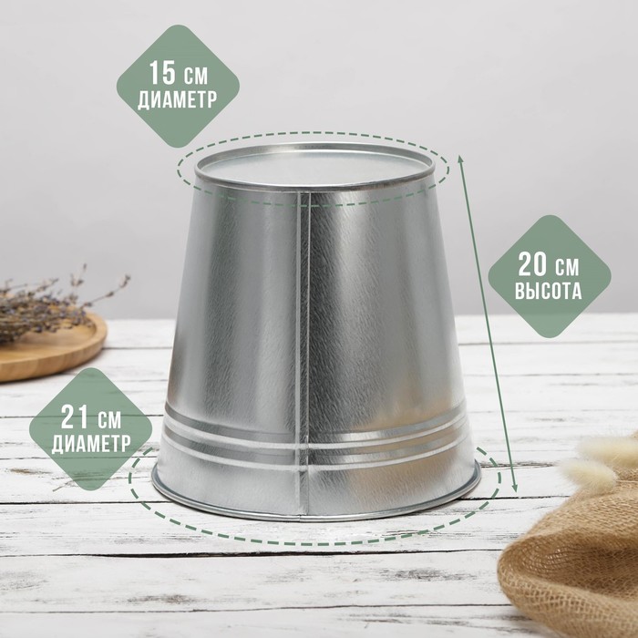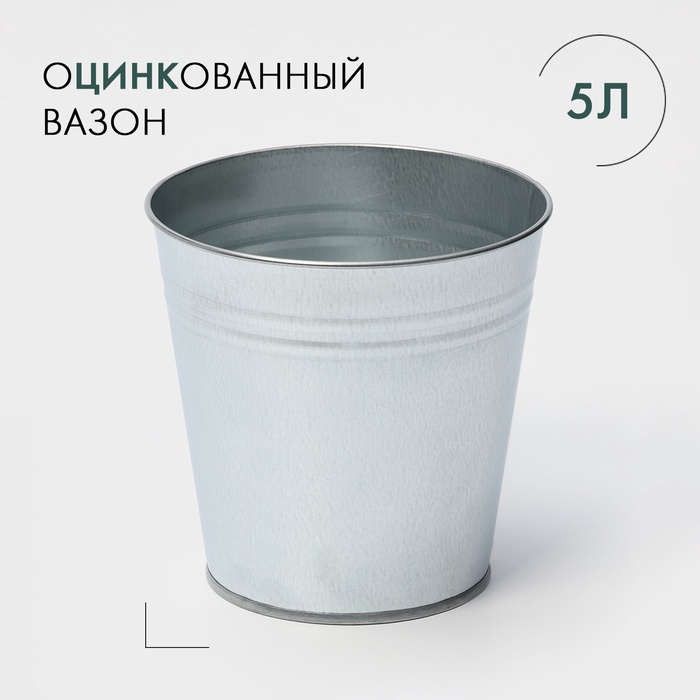 Вазон оцинкованный без ручек, 5 л, h=20.5 см, ГОСТ