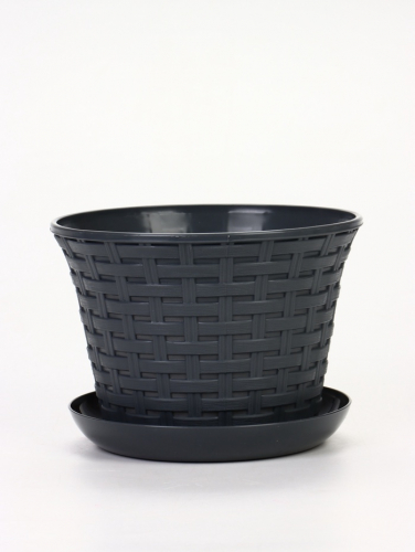 Кашпо для цветов «Ротанг», 2.1 л, d=18 см, h=13.2 см, пластиковое, с поддоном, белое