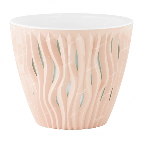 Комнатные растения гармонично вписываются в любую обстановку и наполняют её уютом. Кашпо «Вдохновение» с объёмной волнообразной текстурой поможет подчеркнуть красоту и индивидуальность растения. Кашпо представлены в самых разных объёмах и расцветках, а поэтому подойдут для больших и маленьких растений, простых цветов и сложных флористических композиций. Конструкция предусматривает удобные технологические ручки, которые упрощают уход (пересадка) за растением. Состоит из основного декоративного горшка и внутренней вставки с дренажными отверстиями. Наличие такой дренажной вставки обеспечивает отвод воды от грунта и позволяет дышать корневой системе растения. Кашпо окрашено в белый цвет, изготовлено из надёжного пластика, благодаря чему отличается прочностью, устойчивостью к ультрафиолету и перепадам температур. Объём – 2,25 литров, диаметр – 17,5 см.