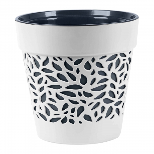 Цветочное кашпо «Блоссом»– отличный вариант для озеленения квартиры, офиса или любого другого помещения. Благодаря своему минималистичному и современному дизайну, кашпо идеально дополнит и оживит интерьер. Состоит из основного декоративного горшка и внутренней вставки. Внутренняя вставка даёт возможность контролировать уровень жидкости, из-за чего растение будет потреблять влагу по мере необходимости. Её гладкие стенки не дадут корням возможности прирасти к ним, а наличие пространства между корпусом и вставкой позволяет воздуху циркулировать, обеспечивая терморегуляцию корней и не давая им перегреваться на солнце. Кроме того, наличие вкладыша вместо поддона не даёт пролиться излишкам влаги. Кашпо производится из крепкого и устойчивого к ультрафиолетовым лучам и повреждениям пластика. Также изделия из пластика не подвергаются нападению грибков и на них не образуются солевые и известковые налеты.Характеристики:• объём – 3,5 л;• диаметр – 17 см;• цвет вставки – белый;• цвет основного горшка – белый.